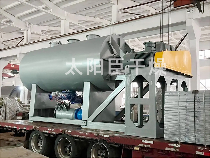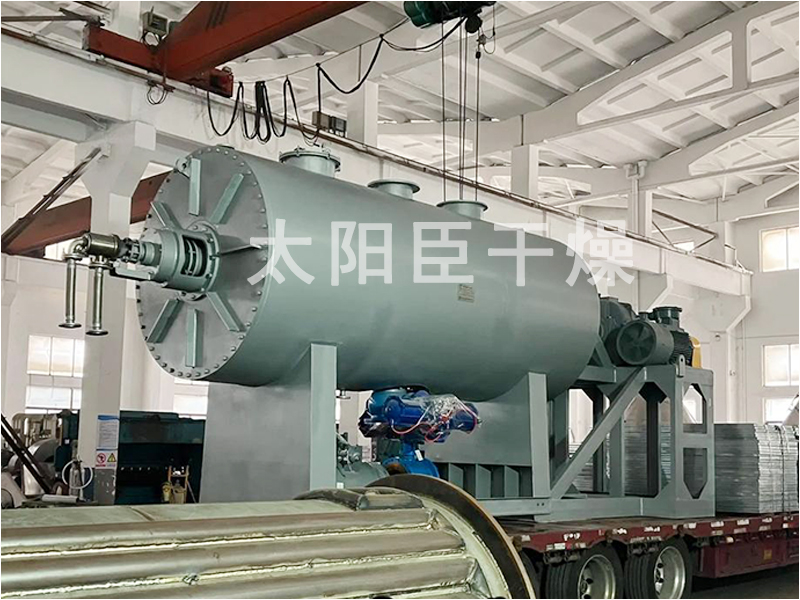 本机是一种新颖卧式间歇式真空干燥设备,湿物料经传导蒸发,带有刮板搅拌器不断清除热面上的物料,并在容器内推移形成循环流,水份蒸发后由真空泵抽出。